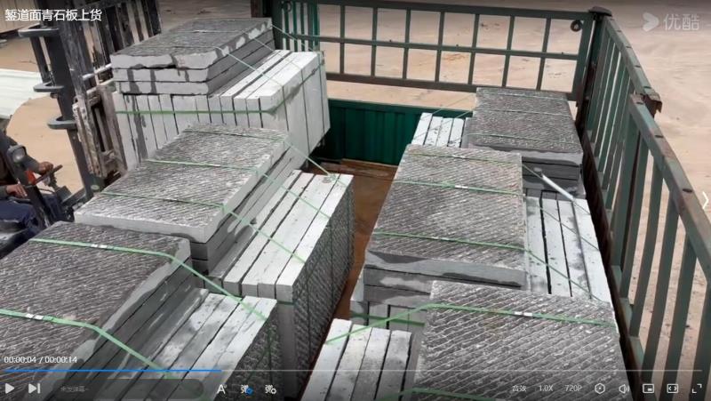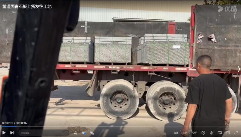 錾道面青石板上货发往工地